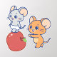This charming anime graphic captures a delightful moment shared between the two famous mice from "Tom and Jerry." Tuffy walks triumphantly atop a giant, glossy apple, while Jerry pushes the apple along with excitement, perhaps suggesting a playful game or a shared snack. Their expressions are full of joy and mischief, encapsulating the essence of their adventurous spirits. The simple yet vibrant colors and the delicious apple add a touch of whimsy and playfulness to the scene, making this graphic a delightful depiction of the camaraderie and fun that defines Tuffy and Jerry's relationship. Perfect for decorating a child’s space or as a cute addition to any fan’s collection.