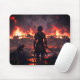 A distinctive design for anime lovers. A mouse with a hand on it, depicting a young warrior standing in the middle of a sea of chaos, smoke and fire.