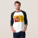 I bought the Men's Basic 3/4 Sleeve Raglan T-Shirt, White/Navy. It arrived on time for a gift and is of a great quality and fits perfectly! So cute! Zazzle has done it again! The printing was clear and filled in solidly.