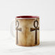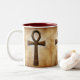 The Ankh symbol itself is prominently displayed, printed on the surface. It may be rendered in gold, black and brown for a striking contrast against the mug's base color, which is white.