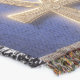 A quality printed throw has its advantages. This is a much finer weave throw than its loopier cousins, and though lighter, it is worth the investment for custom room accessorizing. The back is much prettier than the typical brown, and the fringe on the long sides very vivid, the selvage nicely done. Before photographing, I washed the throw in cold water, delicate, with a thicker woven throw the same size. On tumble dry low, this throw was dry in half the time as the other. This is a very practical quality if you use throws for furniture covers or to wrap up in frequently. The sleekness of the fabric makes it a great layer for accenting or protecting without the feeling of sitting on too much stuff. Perfect for napping or when you feel a light chill coming on. The color printing is beautiful and on this fabric, matched the design and color of my Photoshop image. This is an advantage for blending room fabrics and colors. The fringe on the short sides prints the colors from the design image and therefore varies from the side fringe. I streaked a white fractal line through the plaid pattern to give the illusion of weaving. This printed as crisp as an illusory thread, and put some white in the short side fringe, showing another advantage of print vs loomed- for artistic purposes, line lines, detail, and color integrity can be planned and preserved. My loomed throws have color limitations and more of a needlepoint texture. Print throws reproduce an exact image. The throw felt a little stiff straight out of the package, but this went away in the first delicate wash. Of course I searched the wash water for ink or bleeding and there was none.