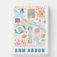 A cute hand illustrated design featuring prominent places and events in Ann Arbor Michigan. Perfect for college students, graduates, townies and transplants.