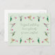 Unique card featuring a watercolor wreath of Anna's hummingbirds and flowers on a green background and the quote "Time spent watching hummingbirds is never wasted". All hummingbird images and quote by C. Dobbins.