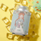 This can cooler features a watercolor scene of Anne of Green Gables Wearing a blue dress with a white apron surrounded by wildflowers on a robin's egg blue background. You can personalize with a name on the front. The back of the cooler shows the back side of Anne. The perfect party favor for any Anne of Green Gables party.