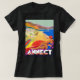 Annecy, woman enjoy on the beach with coastline under her and the mountains. Vintage travel poster on t-shirt.