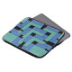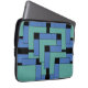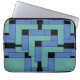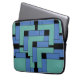 Annex laptop sleeve. Annex is an abstract design created by Anna M. Asbury and consists of turquoise and blue blocks on a black background.
