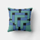 Annex square and lumbar throw pillows. Annex is an abstract design created by Vexenwraith and consists of turquoise and blue blocks on a black background.