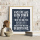 Our unique frameable print is easy to customize with your anniversary and your children's names and birthdates! Modern vintage typography design features the words "First we had each other, then we had you, now we have everything" with spaces for your wedding anniversary and two children's birthdays, on a navy blue background. Have three or four kids? Check our shop for an alternate version.