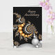 Elegant design for anniversary greetings. Silver, gold, and white beads with intricate detail spiral on a black background. Beveled silver and gold letters spell out "Happy Anniversary".