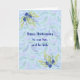 Anniversary card for your Son and his Wife with a blue background of illustrated feathers and flowers. Thanks to the Hungryjpeg for some of the elements in the design.