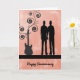 Anniversary card for your son and his husband with a musical guitar and a peachy orange colored background. The son and husband are silhouettes and so is the guitar.