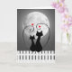 Cute pair of black cat silhouettes gazing at a full moon with red hearts and long tails for wedding anniversary