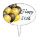 Anniversary Topper shown in a oval shape with a golden balloons print, Happy 50th.