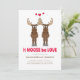 Cute Whimsical Moose saying "it moose be love". This design features an anniversary party invitation, with a funny, humor moose theme, perfect for any style anniversaries, a whimsical "it moose be love" typography, with stylish whimsical hearts.