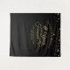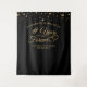 Celebrate any wedding anniversary with this personalized party decor backdrop, wall hanging, banner sign (shown in editable black and gold) or utilize as a fun photo op backdrop for pictures. The design features an elegant calligraphy script typography design of # YEARS INTO FOREVER which incorporates their number of years married and accented with gold interlocking linked hearts and gold confetti. Contact the designer via Zazzle Chat or makeitaboutyoustore@gmail.com if you'd like this design modified, on another product or would like coordinating items.