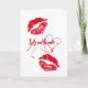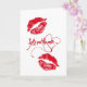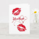 Bright red lipstick kisses with heart string for spouses wedding anniversary.