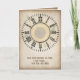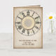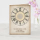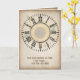 Roman numerals and sunflower on clock face with no hands on sepia textured background for wedding anniversary
