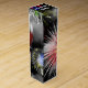 Fireworks in black sky with clouds and red wine in stemware glass for anniversary.