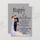 Honor love with this stunning wedding anniversary greeting card! Adorned with a shimmering background, romantic heart designs, a touching message, and a graceful wedding couple illustration, it’s a timeless keepsake for cherished moments.