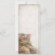Announcement of retirement with old worn and weathered lace-up boots in vintage style. Gender-related text, the year, the honorary text, the date, the time, the place of celebration and RSVP can be customized.