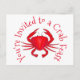 Just personalize with your event information! Postcard-style invitation design features an original marker illustration of a delicious red Maryland hard shell crab. Great for a beach party, picnic or crab feast.