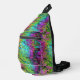 Multi-layers of iridescent oil-slicky dark rainbow circuits in a faux-holographic simulated effect.