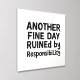 A humorous and relatable typography design capturing the universal feeling of dread when duties interrupt a good time. The text, "ANOTHER FINE DAY RUINED by Responsibility," is presented in a bold, slightly distressed font, emphasizing the sarcastic tone. This design is perfect for anyone feeling overwhelmed by their to-do list, procrastinators, or those who appreciate witty and cynical humor about adult life and the daily grind. It makes a great statement piece for casual wear or home decor.