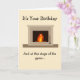 This slightly humorous card is designed to make you chuckle at the prospect of getting older. It is a vertical foldable card with plenty of room to share your thoughts--but only if you want to. It has a drawing of a roaring fireplace on the cover that reflects the irony of the sentiment expressed.