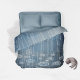 Weather art depicting a wet, stormy day with rain and puddles in shades of blue. Modern abstract graphic painting. Original art by Nic Squirrell.