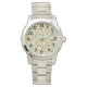 This women's watch has a mix of mid-century modern elements in retro colors, place on a grid. If you like the design but prefer different colors, message me.