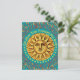 Another trip around the sun cool retro boho birthday party invitation in red, gold, and turquoise with retro Hippie style fonts and smiling vintage sun face. Edit text on the back for an invitation.
