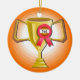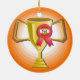 Lightweight, smooth, pure white ornament with nice sheen. Perfect size to be seen from across the room ... and to attract closer inspection! Price was great for ordering enough for the whole family! Clear, bold black design just as requested. Matches the order exactly. Just so nice!