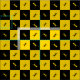 A yellow and black checkerboard is printed on this fabric. On each square is an ant. There are yellow ants on the black squares and black ants on the yellow squares. The ants are walking in diagonal lines. The color scheme is reminiscent of bees, wasps, and caution tape. You can swap out the yellow background color for any other color. Make a chess themed quilt. Curtains for an entomologist. A skirt for an exterminator.