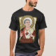 My 11 yo wore adult XL (5’7” 165#). The 8yo is small framed. She wore adult small and tied it in the back. Grandma wore adult large with long sleeve shirt underneath. Tall girl adult medium. Dark haired male adult large. Good quality dark Heather gray, Gildan brand shirt. -it was next up from basic choice and cost about $20 per shirt. Not too thick or thin. Washed and dried well, no major shrinkage. Not see-through. Can wear a bra under it fine. Screen print is just as shown and well done, front and back.