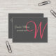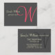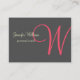 Your fully customizable professional business card featuring your name and your bright red elegant initial on an anthrazite coloured background. On the back your decorative initial is repeated as a black background to your contact data.