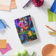 I was super excited when I got my cover in. It is attached by a magnet across the edge. I don’t think it will be very protective but it is very cute. I’m going to keep my iPad in a sleeve and use this face cover while I have it out. It folds to create a tilt for better viewing and to keep the iPad at a slight angle for typing. The colors are bright and it is fun. I’ve really enjoyed it. The personalization looks like amazing. It is the same color as the picture and is the same brightness. Well done! Very nice.
