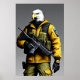 A Portrait of a cool Anthropomorphic eagle with yellow jacket, black gloves and green pants. This is a AI generated art.