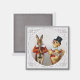 In this image that once graced a Victorian Easter greeting, an anthropomorphic rabbit in a red jacket plays the trumpet while a chicken wearing a top hat sings.