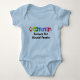I love this onesie, it's adorable! The material is amazing so soft and the color is a perfect sky blue. When my daughter-in asked me to help with her Baby Shower, I was thrilled. It was co-ed & the theme was Cookie Monster. I had no idea that the whole world was after that big blue Monster. Thank goodness for Zazzle, I got most of the party supplies here. Then I found this onesie! They made my customization so easy. The colors are awesome. I wrote the word "Loved" across the bottom of the Cookie Monster in red letters when I was putting it together. I saw the preview & liked it. But to see it in person, OH, it was fantastic, they do exceptional work! I am so glad that I found this onesie/bodysuit. The production time and shipping were exactly what I was told, which made it easy to plan the party. Packaging was nice as well. If you are looking at this product, look no further, I highly recommend it! I'm certain that I'll be back to "design" whatever my new Grandson "needs.". The printing on the onesie/bodysuit is crisp, and clean. With perfect colors that blend well with the blue background of the basic material. We are so happy with how it came out.