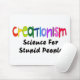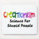 In an appropriate crayon font with bright colors the word "Creationism" stands out above the smaller words "science for stupid people" in black text on light shirts and white on dark shirts.