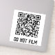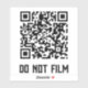 A sticker shield for those who do not want to be filmed or scanned. The QR code currently leads to an annoying website, but can be personalized to any site you want. The text can also be personalized. The design is the same on front and back. A likely deterrent against anyone seeking to film you when you would prefer they don't, as they won't want to risk harming their device by pointing it at the QR. It is not recommended that you use this sticker to break any laws.