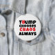 This sign lets people share how they feel about president Donald Trump. The saying "Trump Chooses Chaos Always" reflects how some people are expressing their varying perspectives and worries regarding statements and actions from his campaign and presidency.