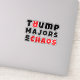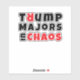 "Trump: A Master of Chaos" emblazoned on a sticker with bold red and black typography. The design features "Trump Majors In Chaos" prominently displayed in a red and black color scheme, emphasizing the subject's perceived chaotic tendencies.