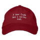 The design was easy to do with a number of options both the hat style, color and so forth. These aren't some printed letters, these are the real deal stitching. The two hats arrived quickly. I've used Zazzle in the past for shirts a number of times and this is the first time for a hat. Zazzle is absolutes the best in every respect; customer service, product selection and results. The embroidery was just right. My artwork was turned into a professional look thanks to Zazzle.