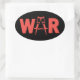 This design is centered upon two crutches made from the body of two AR-15 rifles forming the "A" in WAR. The center crossbar is made with the prefic "Anti-".