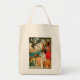 The printing came out very well, better than I had anticipated. The natural color fabric is sturdy with strong seams and comfortable handles. This tote fits easily over my shoulder. As it is filled, the bottom flattens out--very cool! I would buy this product again. This grocery tote holds a lot of groceries! The image quality was very good. The colors were a little darker than I had expected. The darkness may have been due to printing on a natural color fabric rather than on white. The cat design is attractively centered on the tote. The spirit of the design is very lively, just as it appears on the Zazzle website.