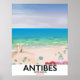 Antibes, French cartoon sandcastle on a beach holiday poster.