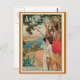 Classic vintage travel poster issued by the French PLM railroad company advertising travel to Antibes by express train either by day or night. It shows a fashionable lady with her dog looking out over the city.
