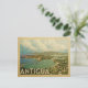 Antigua design in Vintage Travel style featuring a tropical island scene with ocean and blue sky.