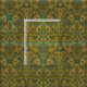 This is a digitally enhanced print derived from an image of an antique 17th century textile fragment featuring a pattern of vases, birds and lions.